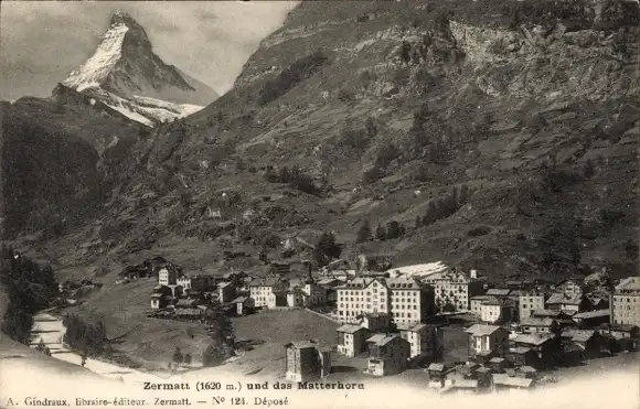 Ak Zermatt Kanton Wallis, Teilansicht mit Matterhorn