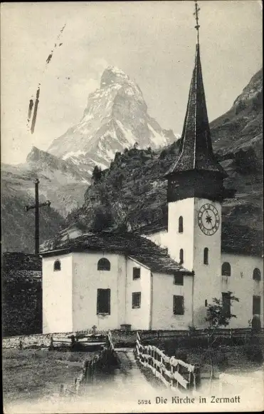 Ak Zermatt Kt. Wallis Schweiz, Kirche, Matterhorn