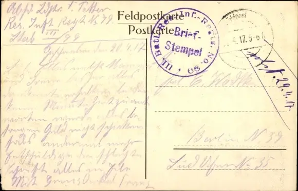 Zustand, siehe Scan, gelaufen, 1917 - ca 14 cm X 9 cm