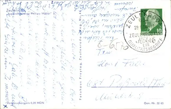 Ak Zeulenroda in Thüringen, Jugendherberge Philipp Müller, FDJ