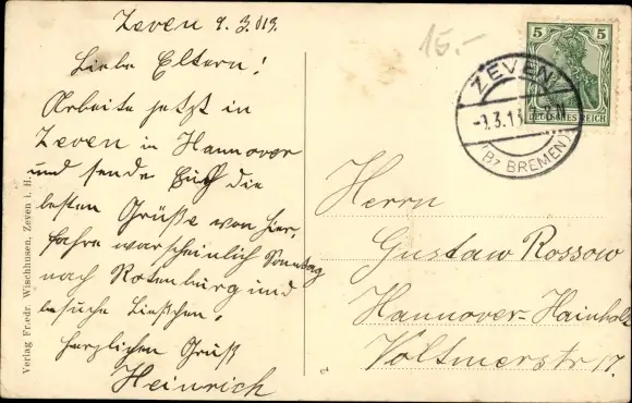 Zustand, siehe Scan, gelaufen, 1913 - ca 14 cm X 9 cm