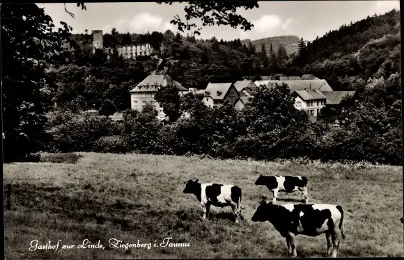 Ak Ziegenberg Ober Mörlen im Taunus, Gasthof zur Linde, Kühe weiden