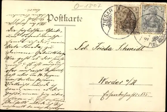 Zustand, siehe Scan, gelaufen, 1907 - ca 9 cm X 14 cm