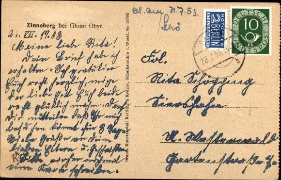 Ak Zinneberg Glonn in Oberbayern, Rückansicht