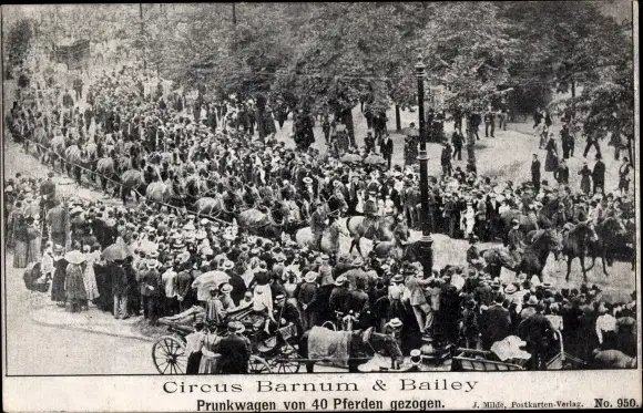 Ak Zirkus, Circus Barnum & Bailey, Prunkwagen von 40 Pferden gezogen