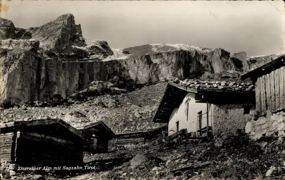 Ak Zirl in Tirol, Zlerrainer Alm, Sagzahn, Berge, Hütten, schwarz-weiß