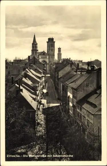 Ak Zittau, Weberstrasse mit Johanniskirche