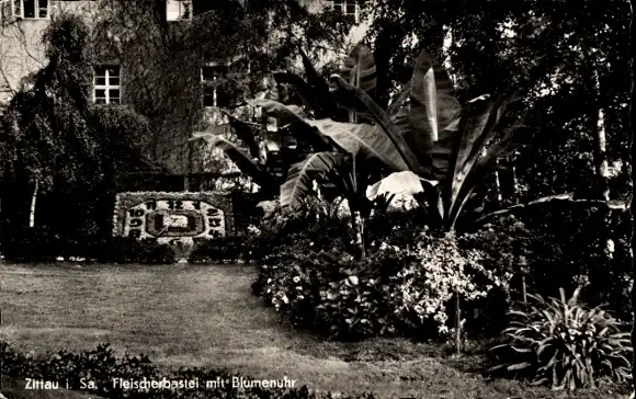 Ak Zittau in Sachsen, Fleischerbastei, Blumenuhr