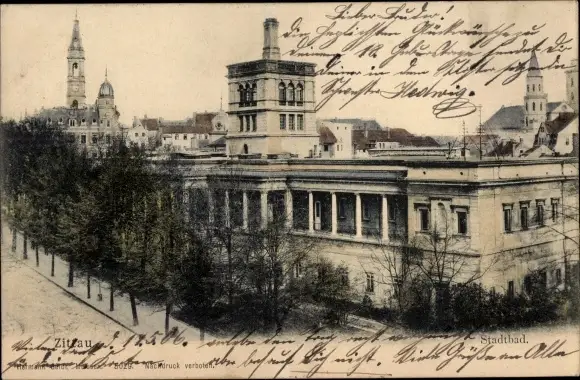 Ansichtskarte, Postkarte, Badeanstalt, Schwimmbad, Freibad, Strandbad, Volksbad