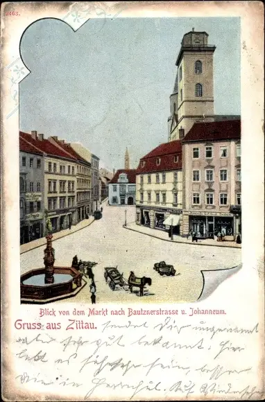 Ak Zittau in der Oberlausitz, Markt, Bautzner Straße, Johanneum