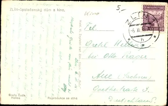 Ak Zlín Zlin Stadt, Spolecensky dum a Kino, Sozietätshaus, Fontäne