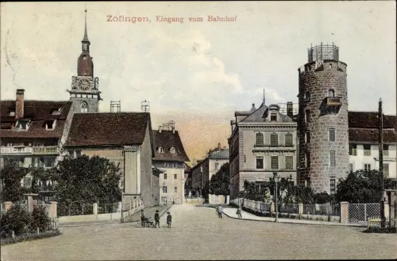 Ak Zofingen Kanton Aargau, Eingang vom Bahnhof