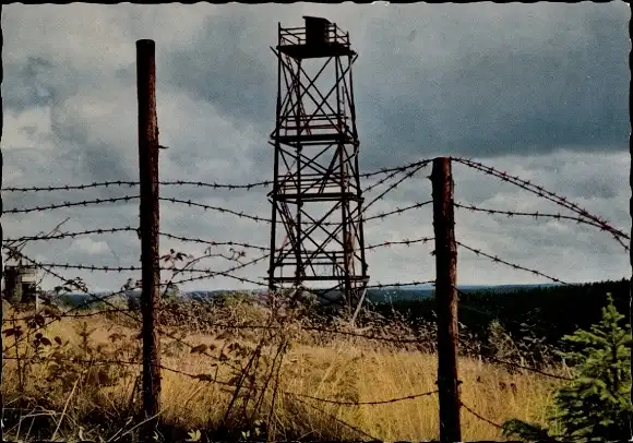 Ak Zonengrenze im Harz, Aussichtsturm, Stacheldraht