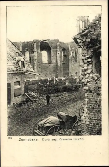 Ak Zonnebeke Westflandern, Durch englische Granaten zerstört