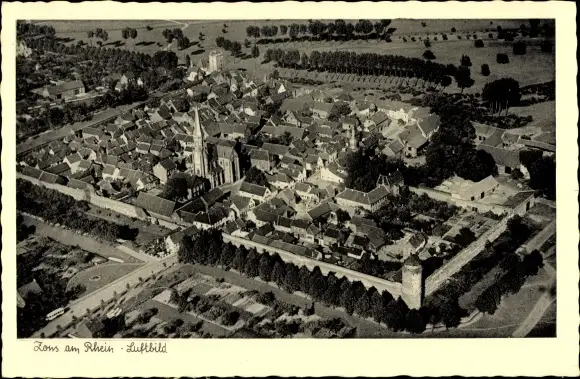 Ak Zons Dormagen Niederrhein, Sicht auf den Ort aus der Luft