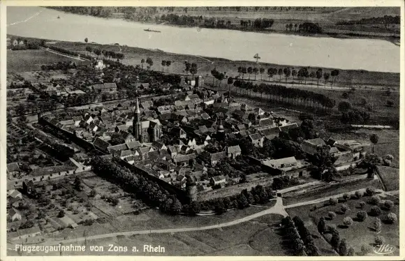 Ak Zons am Rhein Dormagen, Fliegeraufnahme, Häuser