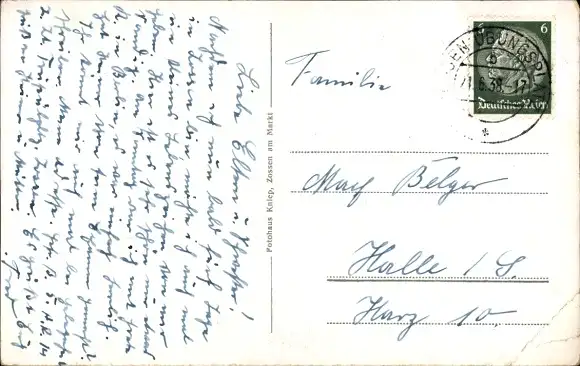 Zustand, siehe Scan, gelaufen, 1938 - ca 14 cm X 9 cm
