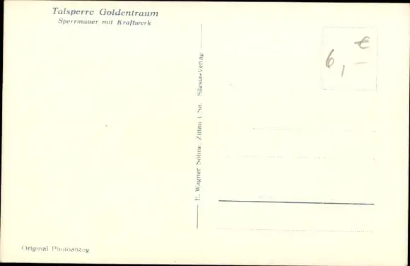 Ansichtskarte, Postkarte, Talsperre, Stausee, Staudamm, Staumauer, Schlesien