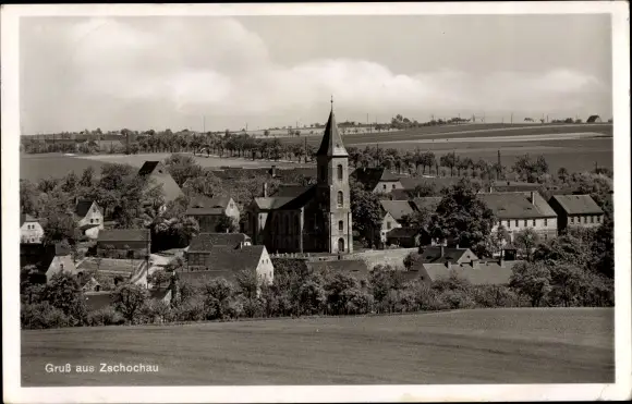 Ak Zschochau Ostrau in Sachsen, Dorfansicht mit Kirche