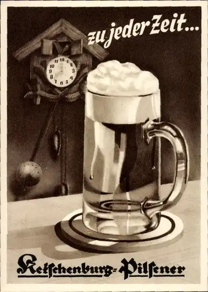 Ak Zu jeder Zeit Ketschenburg Pilsener, Bierkrug, Reklame, Kuckucksuhr