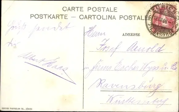 Zustand, siehe Scan, gelaufen, 1908 - ca 14 cm X 9 cm