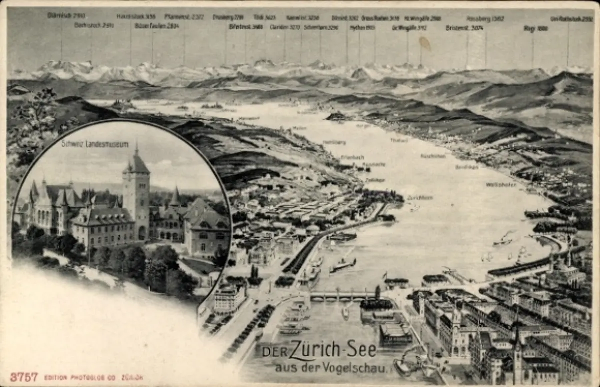 Ak Zürich, Der See aus der Vogelschau, Landesmuseum