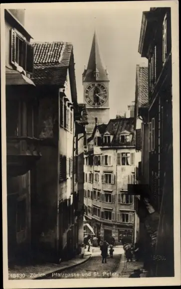 Ak Zürich Stadt, Pfalzgasse, St. Peter, Turmuhr