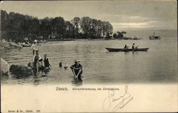 Ak Zürich Stadt Schweiz, Abendstimmung am Zürichhorn