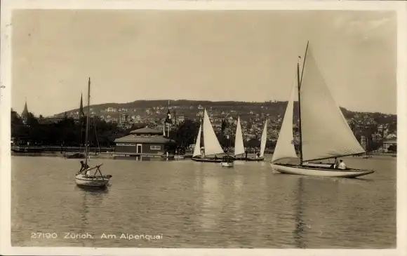 Ak Zürich Stadt Schweiz, Alpenquai, Segelboote