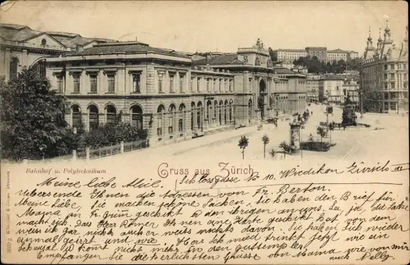 Ak Zürich Stadt Schweiz, Bahnhof und Polytechnikum