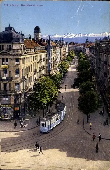 Ak Zürich Stadt Schweiz, Bahnhofstraße, Straßenbahn