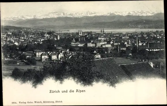 Ak Zürich Stadt Schweiz, Blick auf den Ort und die Alpen