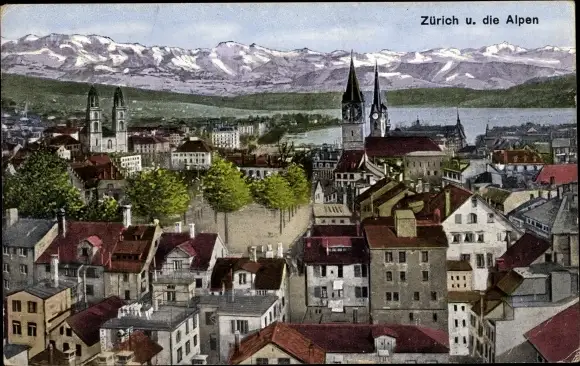 Ak Zürich Stadt Schweiz, Blick auf die Stadt und Alpen