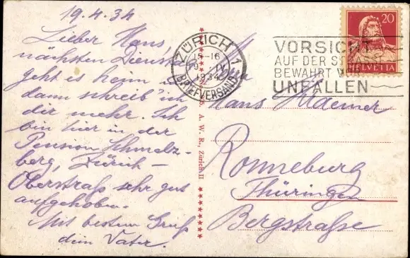 Zustand, siehe Scan, gelaufen, 1934 - ca 14 cm X 9 cm