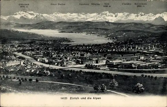 Ak Zürich Stadt Schweiz, Gesamtansicht, Alpen