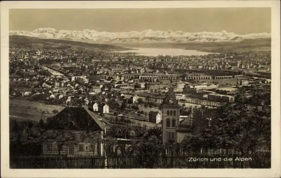 Ak Zürich Stadt Schweiz, Gesamtansicht mit Alpen