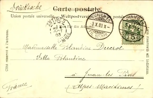 Zustand, siehe Scan, gelaufen, 1903 - ca 14 cm X 9 cm