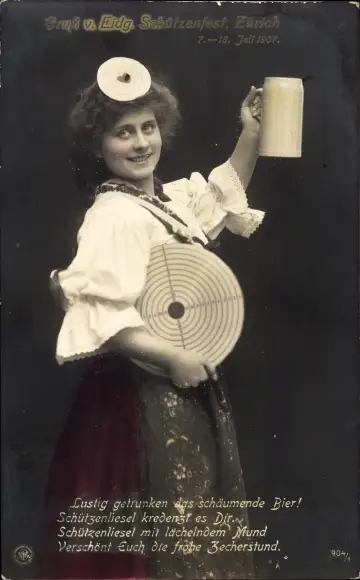 Ak Zürich Stadt Schweiz, Gruß vom Schützenfest, Wirtin in Tracht