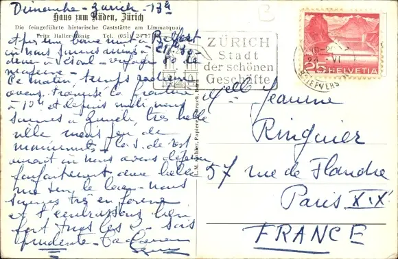 Zustand, siehe Scan, gelaufen- Inh.: Fritz Haller König - ca 14 cm X 9 cm