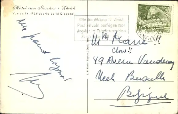 Ak Zürich Stadt Schweiz, Hotel zum Storchen, Speisesaal