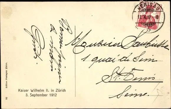 Ak Zürich Stadt Schweiz, Kaiser Wilhelm II., Besuch 3. September 1912