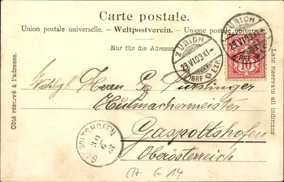 Zustand siehe Scan, gelaufen, 1903 - ca 14 cm X 9 cm