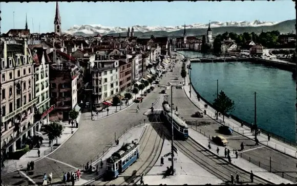 Ak Zürich Stadt Schweiz, Limmatquai, Straßenbahn