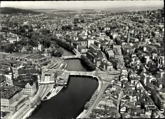 Ak Zürich Stadt Schweiz, Luftaufnahme