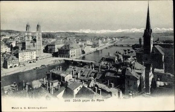 Ak Zürich Stadt Schweiz, Luftbild der Stadt