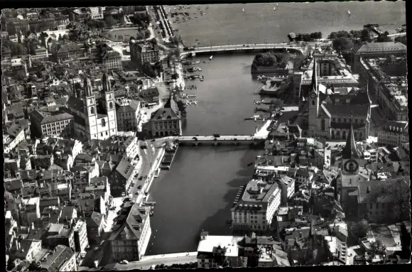 Ak Zürich Stadt Schweiz, Luftbild der Stadt
