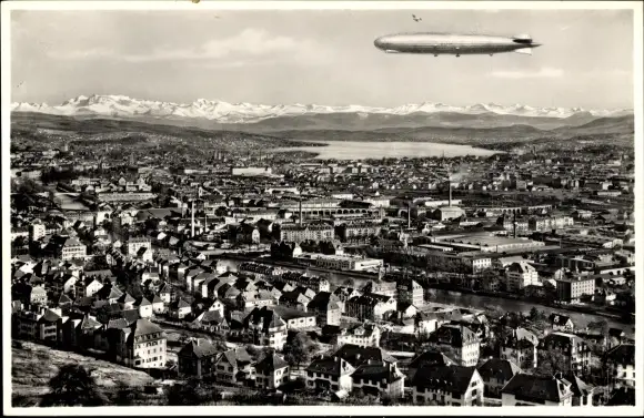 Ak Zürich Stadt Schweiz, Luftschiff Graf Zeppelin LZ 127 über der Stadt