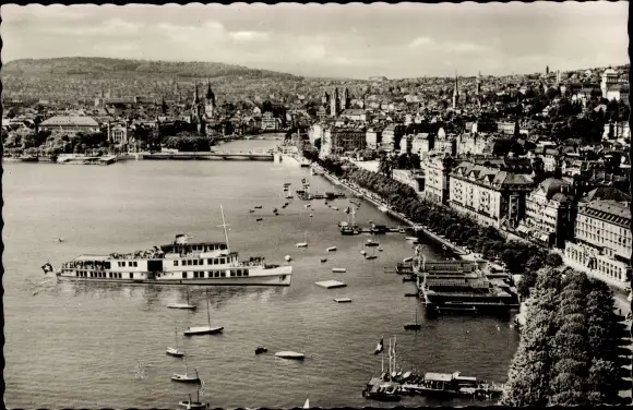 Ak Zürich Stadt Schweiz, Panorama, Dampfer, Hafen