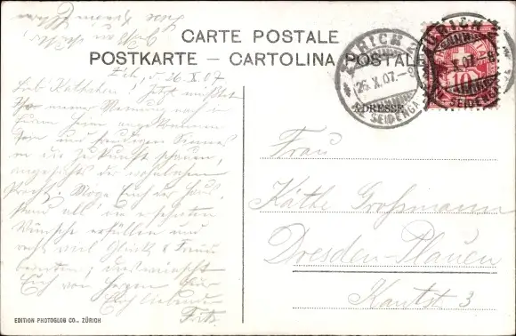 Zustand, siehe Scan, gelaufen, 1907 - ca 14 cm X 9 cm
