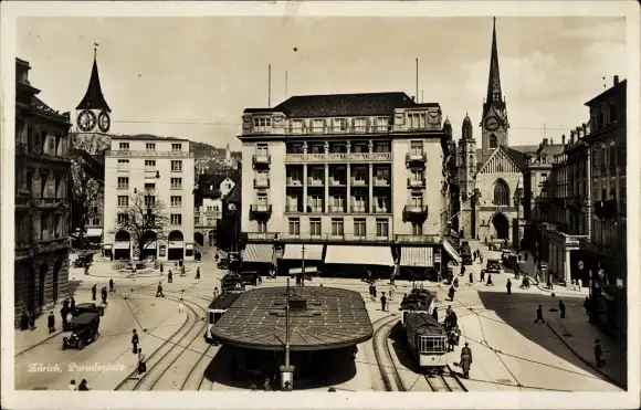 Ak Zürich Stadt Schweiz, Paradeplatz, Straßenbahn
